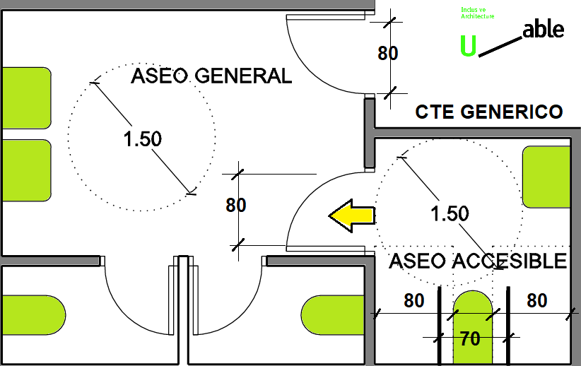 El aseo accesible o adaptado debe estar a libre disposición de las personas sin impedimento, cierre o necesidad de solicitar su uso.
